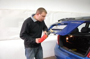 Danach wurde ihm am Beispiel eines 3'er BMW aus Rumänien beigebracht, wie die Aufbereitung eines extrem verschmutzen Innenraums durchgeführt wird.