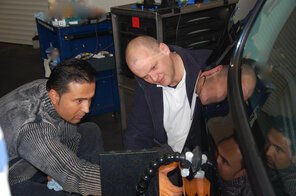 Nach dieser Theorieeinlage hat Ali gelernt, wie Autos professionell für eine Aufbereitungswäsche vorbereitet werden und mit welcher Waschtechnik ein Fahrzeug gewaschen wird, so daß er auch sofort eine erste eigene Aufbereitungswäsche erfolgreich durchführen konnte.