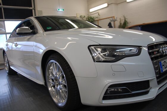Der S5 wurde einer professionellen Autowäsche unterzogen. Der Kunde wünschte dabei ein besonderes Augenmerk auf Türkanten, Türfalze, Einstieg und Türgelenke zu legen.