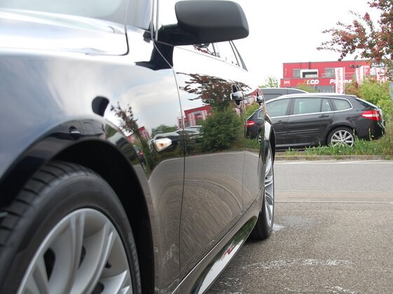 Langstrecken Fahrzeug BMW E60 535d mit 280.000 KM Autobahn haben ihre Spuren hinterlassen. Der Kunde wünschte sich im Sommer 2016 eine Lackaufbereitung mit anschließender Lackversiegelung beim Autoputzer Ludwigshafen.