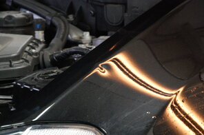 Der Firmenwagen einer Sitzmöbel-Firma war mit einer extremen Delle auf der Motorhaube und auf dem vorderen linken Kotflügel mit einer sehr tiefen und spitzen Delle versehen, die entfernt werden sollten:
