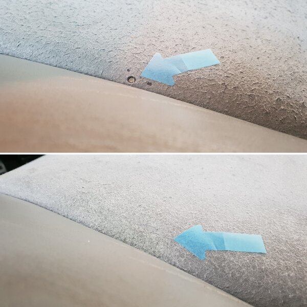 Das Brandloch wurde punktuell repariert und nach einer Bearbeitungszeit von wenigen Stunden konnte der Kunde sein Fahrzeug wieder abholen.