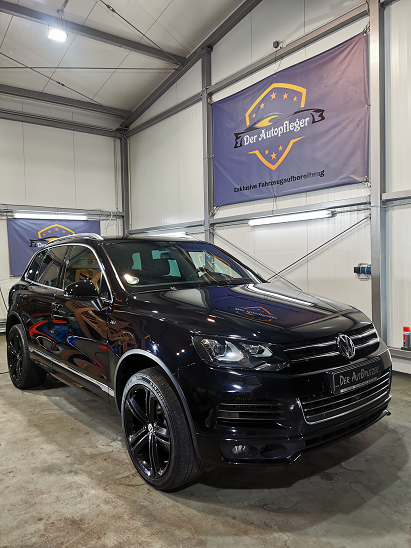 Der Lack des VW Touareg ist wieder glatt, gewachst und aufgefrischt, zusätzlich wurde der Innenraum gründlich gereinigt.