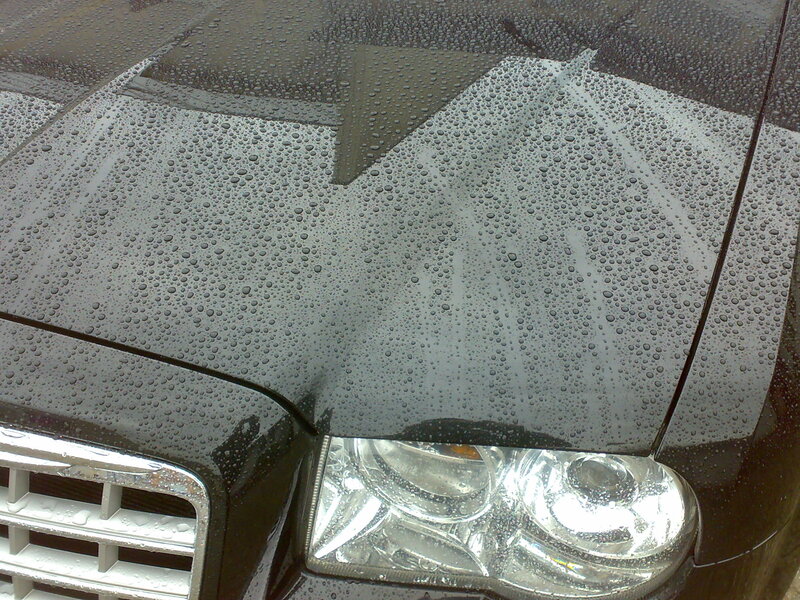 Auf einer versiegelten Lackoberfläche bilden sich bei Regenwetter schöne Wassertropfen und das ist auch nicht alles.