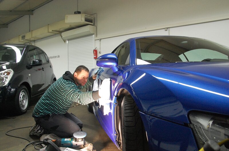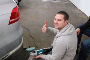 Am nächsten Tag lernte Danny die professionelle Lackaufbereitung: "wie entfernt man Vogelkot oder Insekten (Fliegenreste) vom Autolack?" oder "wie beseitige ich Autolack- Kratzer?"