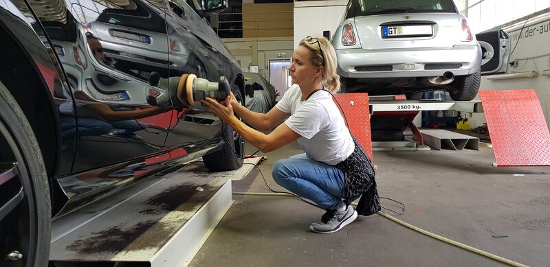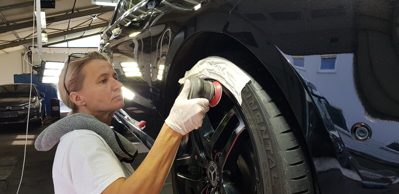 Nach der Schulung in der professionellen Autowäsche, Ceramic-Coating, Waxing, Verkaufspolituren, Felgen-Smartrepair, Plastikreparatur, etc. hat Denise alle weiteren Punkte hervorragend vermittelt bekommen und ist zum Abschluss wissenstechnisch bestens gerüstet gewesen, das Wissen in RP einzusetzen!