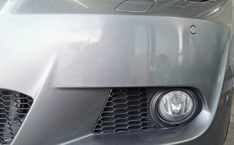 An der Stoßfängerverkleidung vorne links wurden tiefe Kratzer und Lackabplatzungen im Smartrepair Verfahren wieder optisch hergerichtet.