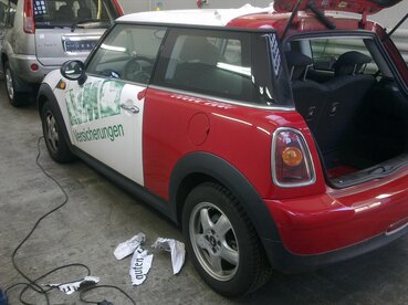 Firmenfahrzeuge werden öfters mit Folie vollverklebt, damit alle Autos gleich aussehen.