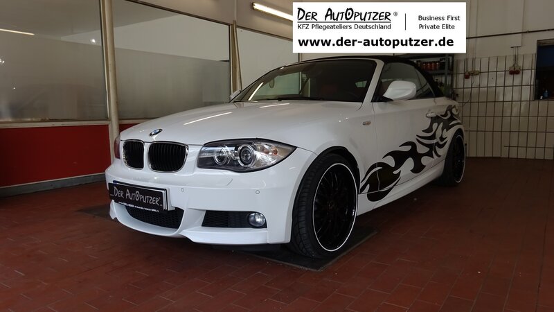 Der Kunde aus Engelskirchen wollte seinen 1'er BMW mal fachmännisch polieren und mit einer hochwertigen Ceramic-Lackversiegelung beschichten lassen, um einen ordentlichen Lackschutz zu haben.