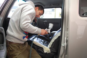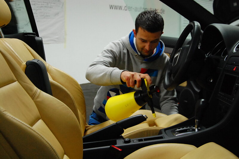 Die Lederreinigung und Lederpflege bei hellen Ledersitzen wurde ihm an einem Audi A4 Cabriolet gezeigt.