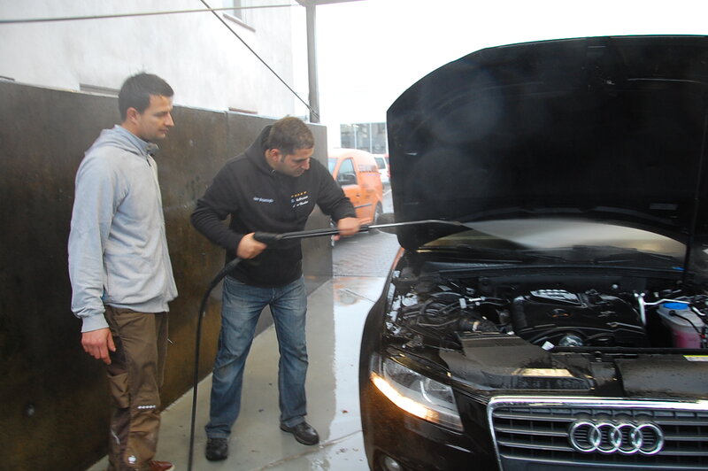 Drei komplette Aufbereitungswäschen führte er durch: an einem Audi A4 Avant aus Dänemark, ein BMW aus Gütersloh und an einem VW Golf 5 GTI aus Paderborn, damit er schnell ein Gefühl für die Systemwäsche bekommt.