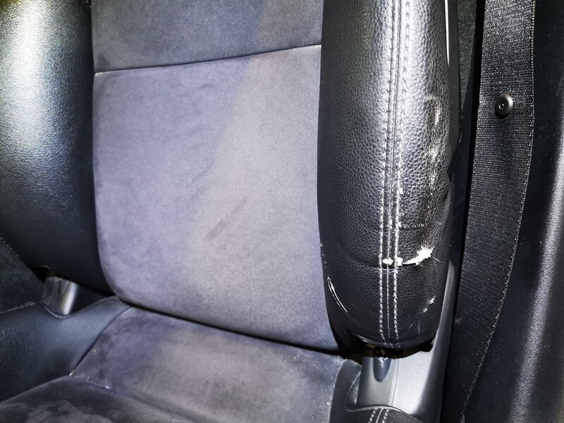 Nach der Fahrzeugaufbereitung wurde noch im Interieur der Fahrersitz an der linken Wange repariert.