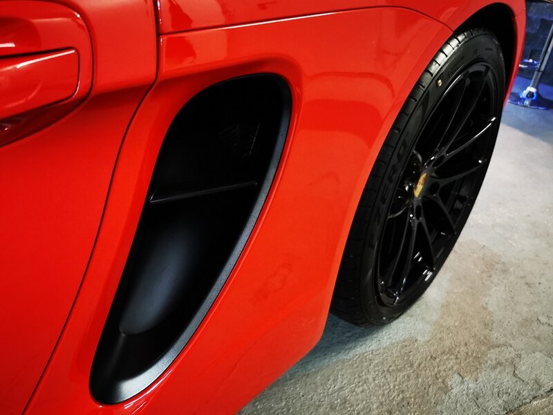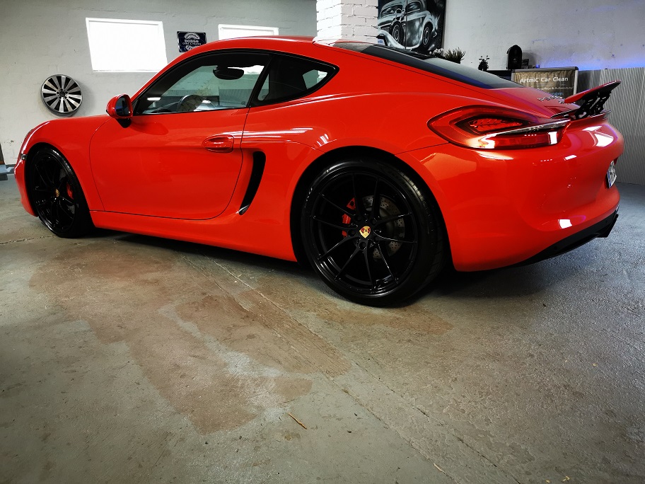 Der Porsche Cayman S erhielt im Anschluss eine zweistufige Lackkorrektur bis hin zum Hochglanzfinish.