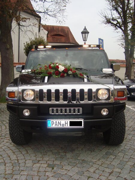 In Kooperation mit Dagmars Blumen & Geschenke in Eggenfelden wurde dieser Hummer auf Hochglanz poliert, der Innenraum gereinigt und anschließend durch Dagmars Blumen & Geschenke dekoriert.