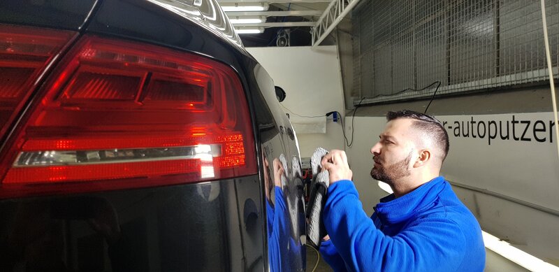 An verschiedenen Kundenfahrzeugen lernte er, wie die Fahrzeugaufbereitung & Kleinschadenreparaturen von A-Z funktioniert.