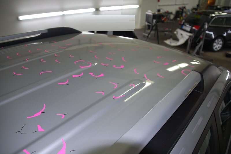 Schnell wurde zusätzlich ein Hagelschaden festgestellt. Der Kunde war verwundert: der Wagen war nie einem Hagelschauer ausgesetzt!