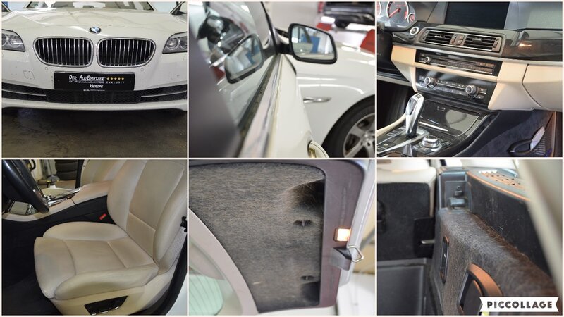 Nach Begutachtung des 5er BMW Touring stellte Der Autoputzer fest, dass der hintere Bereich (Kofferaum und Ledersitze hinten) mit Hundehaaren übersät waren und die Reinigung somit erheblich mehr Zeit in Anspruch nimmt und somit die Dienstleistung teurer für den Kunden wird.