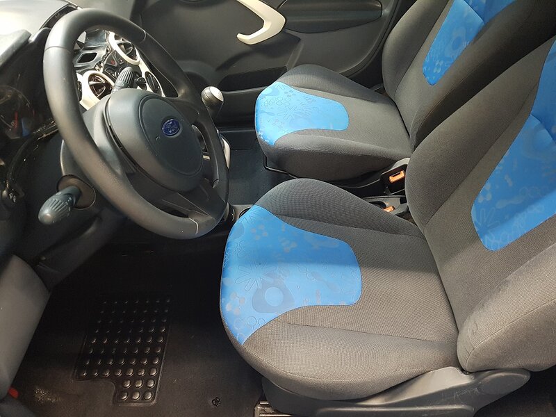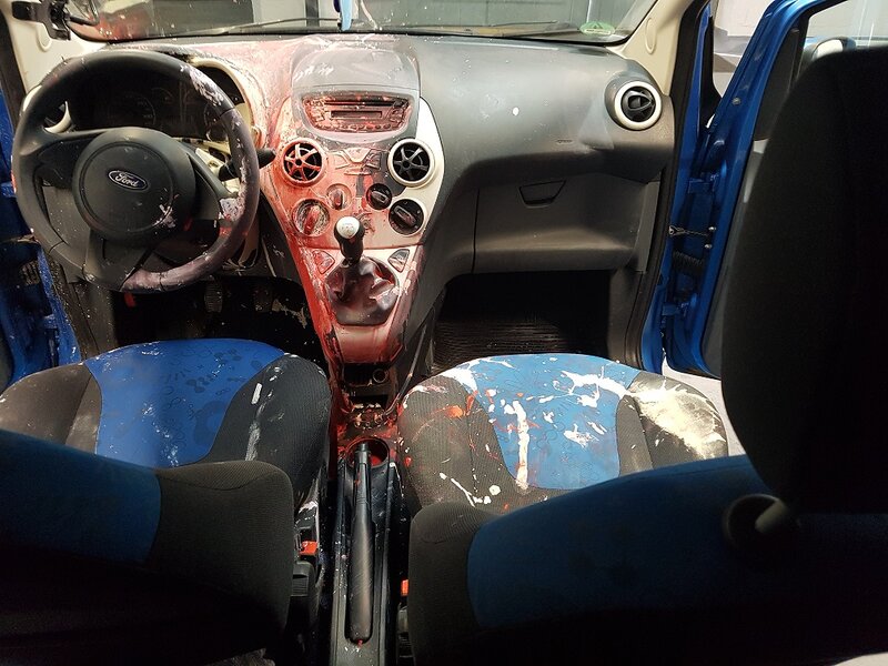 Eine Reinigung des Ford KA Innenraums musste durchgeführt werden. Sie versuchte die Farbentfernung erfolglos in Eigenregie.
