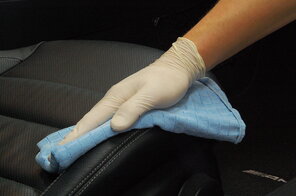 Lederpflege von Autositzen. In regelmäßigen Abständen.