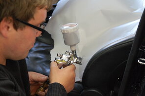 Die kleine Lederreparatur Schulung diente dazu, ihn ebenfalls für die Disziplin der Spotrepair-Methoden in einem Autoinnenraum zu sensibilisieren.