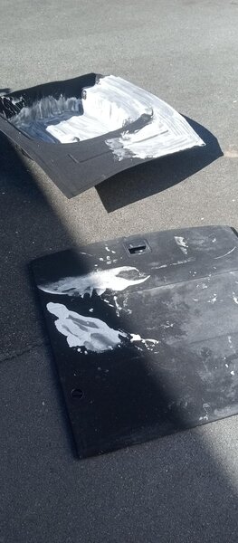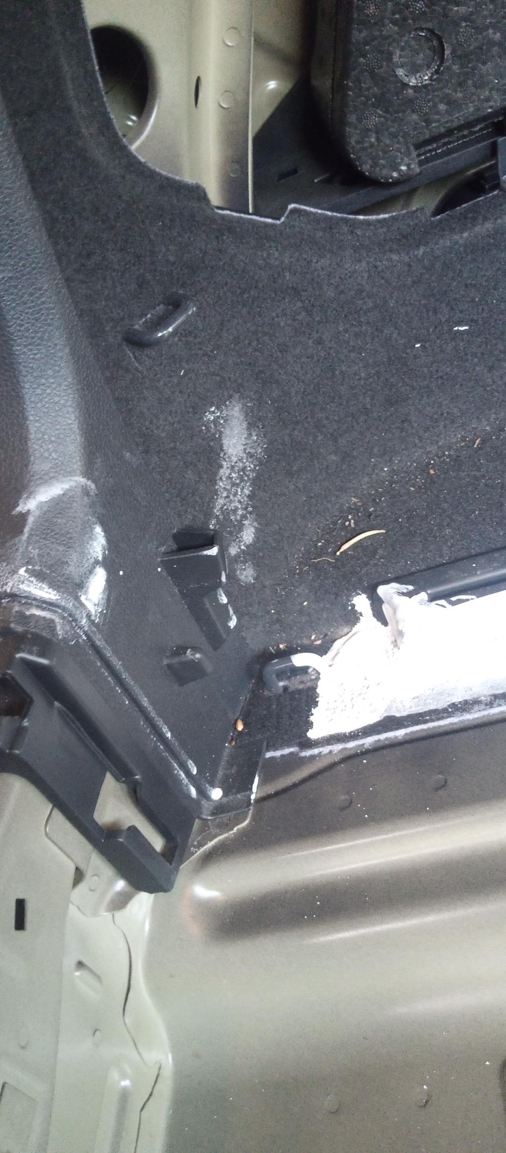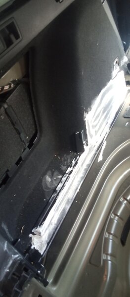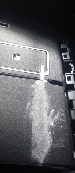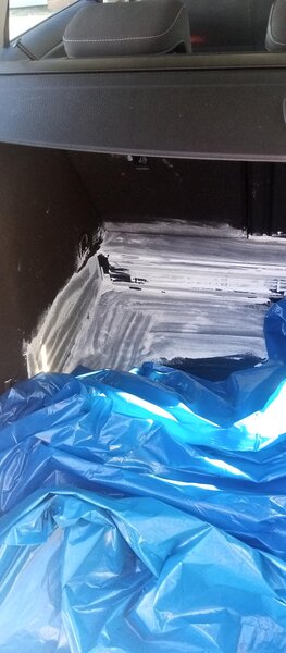 Bei Beginn der Innenraumaufbereitung des Kofferraums stellte sich leider fest, dass die Farbe teilweise schon knochenhart war.