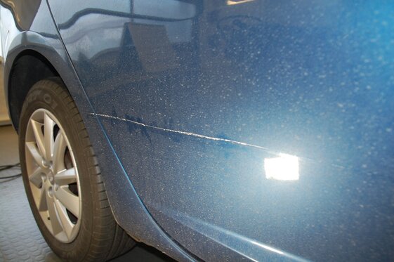 Der Autoputzer Ludwigshafen wurde beauftragt, einen tiefen Kratzer zu beseitigen. Der Schaden entstand durch ein Fahrradpedal an der Seite des Fahrzeuges. Der Kunde befürchtete eine aufwendige und kostenintensive Neulackierung des betroffenen Bauteils.