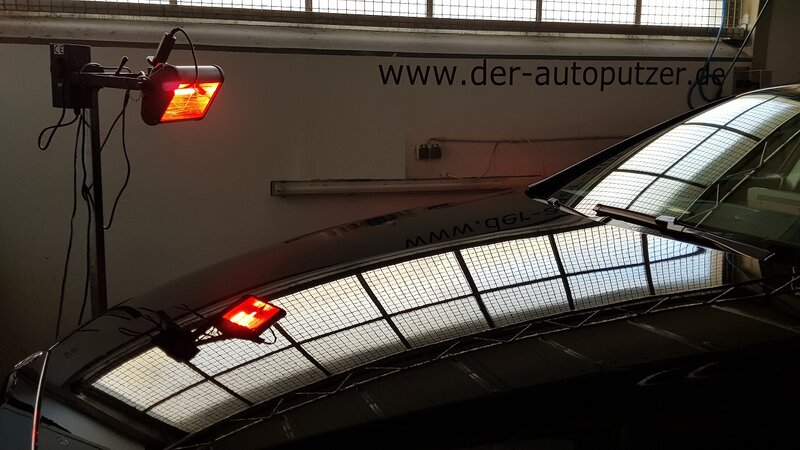 Dem CLS Besitzer war wichtig, dass die Front + Motorhaube mehrfach versiegelt werden, damit sich Insekten, etc. bei hochsommerlichen Temperaturen nicht so schnell in den Autolack einbrennen können. Er wollte nach dem Urlaub keinen großartigen Reinigungsaufwand mehr haben.