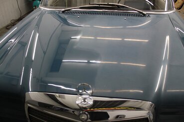 Nach zwei Tagen Oldtimer-Lackpflege & Lackaufbereitung war es so weit. Es war definitiv keine Lackierung des Mercedes nötig.