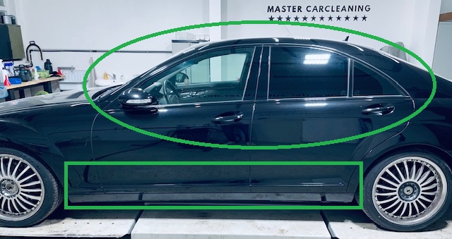 Der Kunde aus Hamburg buchte eine Folierung aller Chromleisten am Fahrzeug (Fensterleisten, Türen, Heckpartie), sowie im Interieur die Neufolierung der in die Jahre gekommenen Wurzelholzoptik an den Türverkleidungen & Armaturenbrett auf Glanz schwarz Optik.
