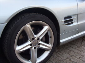 Verschmutzte Felgen und Kratzer am Schweller, Teer und Flugrost am Lack, sowie Waschstraßenkratzer am Fahrzeug.