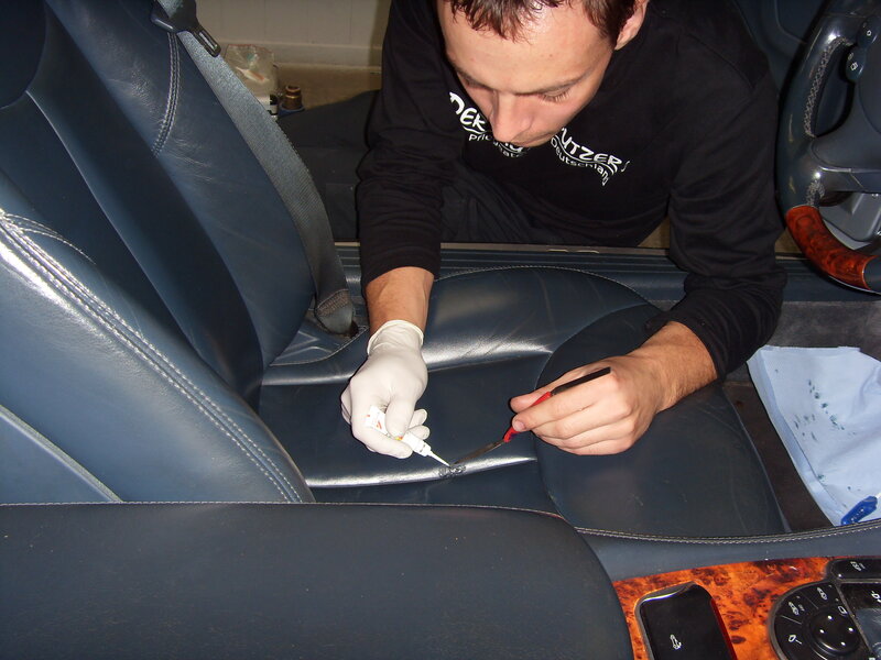 Abgenutzte Ledersitze statt neu beziehen zu lassen, haben wir lackiert.