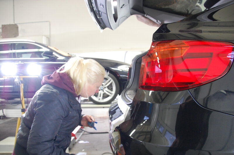 An einem BMW und VW lernte Sie, wie man etwas tiefere Lackkratzer mit einer speziellen Lackaufbereitung wieder korrigieren kann.