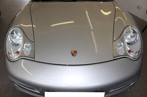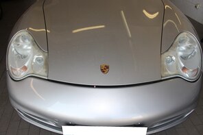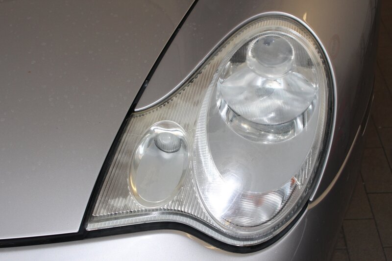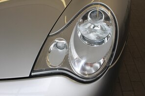 August 2015: Porsche Carrera (BJ 2005) beim Autoputzer ® Mainz / Wiesbaden. Die schnell vergangenen Jahre waren hart für die Scheinwerfer.