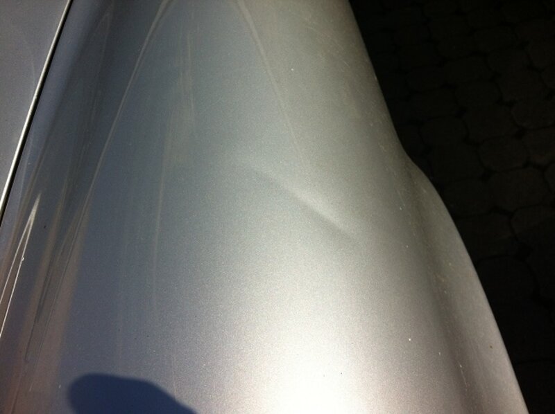 Der Autoputzer Mayen - Beulendoktor tat ihm den Gefallen und entfernte die Beule erfolgreich. Lackierung erspart.