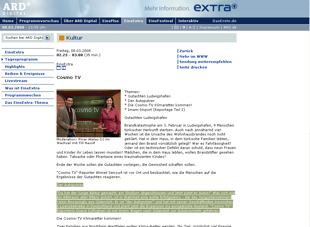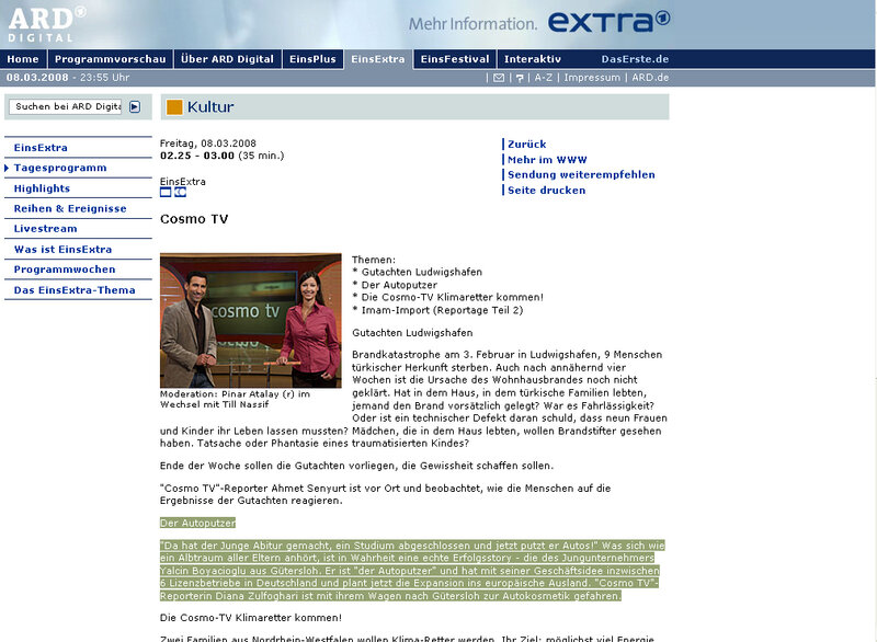 Autoputzer Reportage - Cosmo TV des WDR Köln - Sendung vom 02. März 2008.
