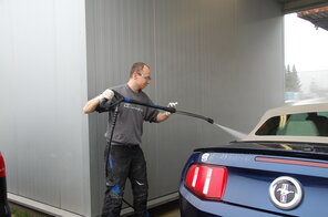 • einen aus den USA importierten Ford Mustang eines Sanitätshausbesitzers einer Privatkundenaufbereitung unterziehen - Auto soll tip top sein