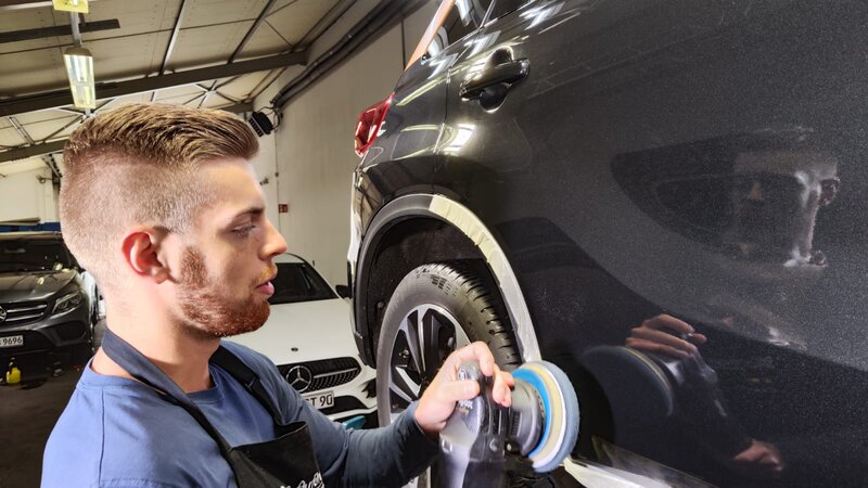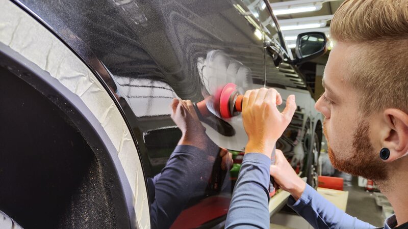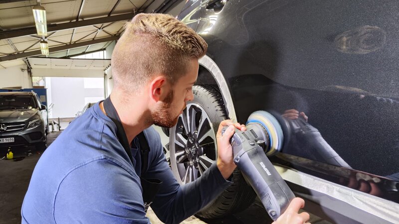 Zwecks Schulung in maschineller Lackpolitur reiste Yannick Ende September 2022 extra einige hundert Kimometer, um sein Wissen in diesem Bereich zu erweitern.