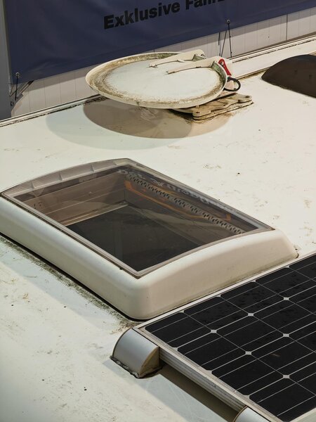 Das Wohnmobil hatte es so richtig nötig, was auf den Bildern ganz gut zu erkennen ist. Die Klimaanlage, sowie der vordere Aufbau waren komplett verblasst, wie auch die Dachhaut.
