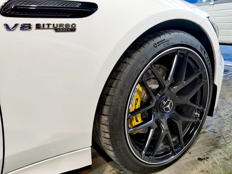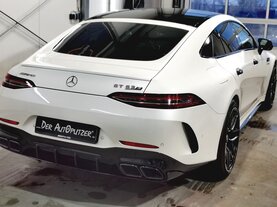Im Innenraum dieses Mercedes-AMG GT 63 S sind sämtliche Kunststoffteile und Leder sorgfältig gereinigt und anschließend gepflegt worden.