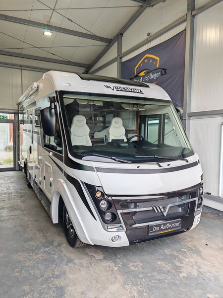 Das neue italienische Wohnmobil der Marke Mobilvetta eines Kunden aus Rostock sollte von Anfang an direkt als Neufahrzeug ganz nach deren Wünschen sein: nach diversen kleineren Umbauten stand u.a. die GOLDSHIELD Keramikversiegelung auf der Wunschliste.