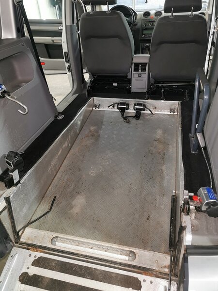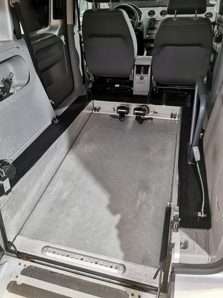 Der VW Caddy einer Kundin aus Rostock wurde für den Transport eines pflegebedürftigen Familienmitglieds umgebaut.