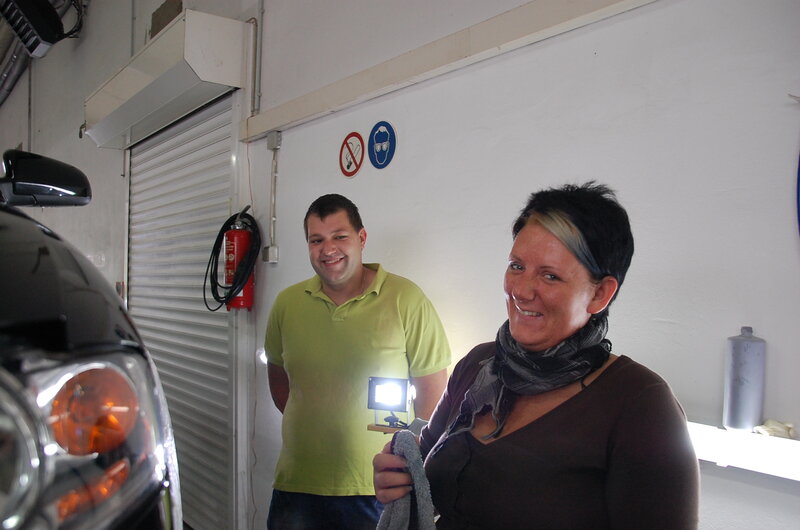 Ihr Partner Florian Vels, dem die neue Firma gehören wird, wollte sie auch mit zur Schulung begleiten. Das war absolut kein Problem für den Autoputzer.