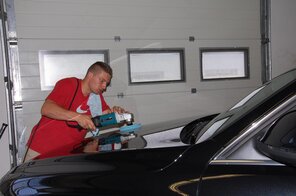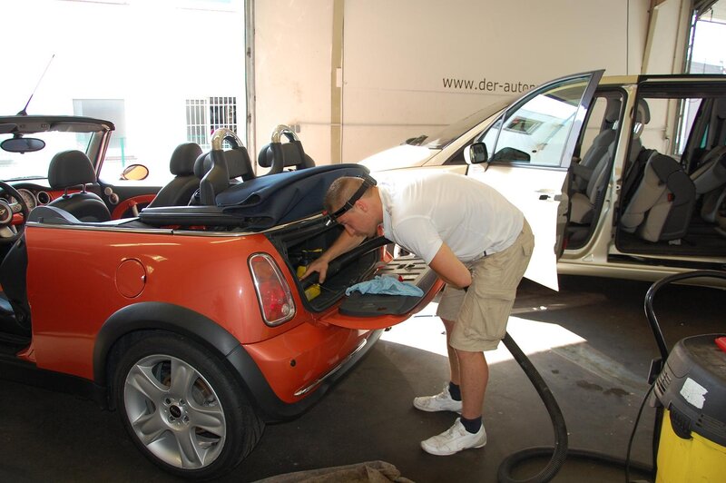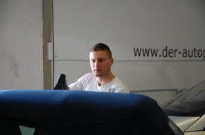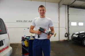 In der ersten Schulungswoche hat Roman an verschiedenen Fahrzeugen gelernt, wie die professionelle Fahrzeugaufbereitung und Reinigung funktioniert.