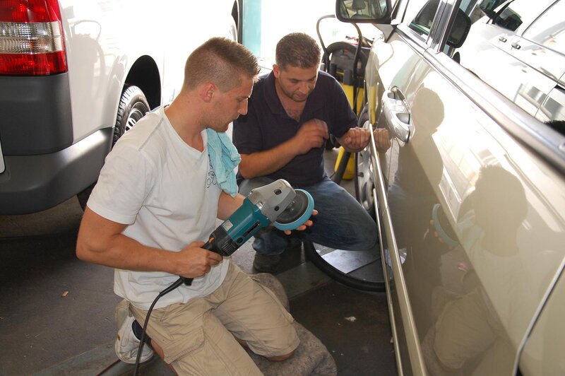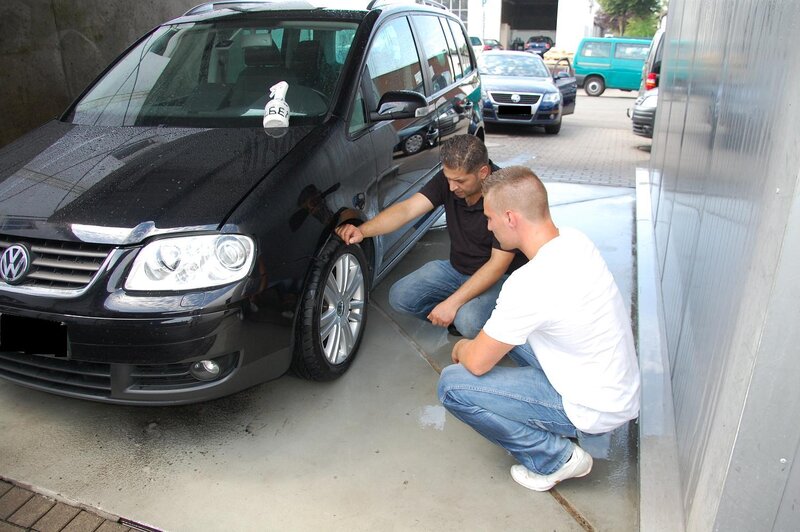 Er musste dieses neue Wissen auch sofort an hochwertigen & teuren Autos anwenden, also die beigebrachte Kunst der Autoaufbereitung an den teuren Autos ausüben, damit keine Berührungsängste bleiben und dann aber auch vor den Kunden unter Beweis stellen.