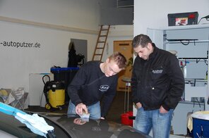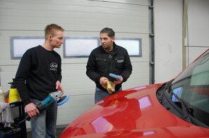 Die Schulung ist sehr intensiv, wobei ich mir die Fahrzeuge sogar aussuchen konnte. Vom alten roten Citroen bis hin zum neuen schwarzen A6 und noch viele andere. Von der Innenreinigung bis hin zum komplettem Schleifen und und und…..