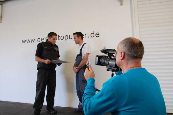 Herr Egon Abken hat direkt eine persönliche Chefbehandlung erhalten. Sein zukünftiger Arbeitgeber, der schon 20 Jahre in der Fahrzeugaufbereitung tätig ist, hat direkt dem Autoputzer Deutschland ® Großchef die Bürde der professionellen Ausbildung auferlegt.