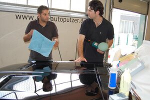 Im Juni 2009 hat Herr Vasilikos erneut eine Schulung in der professionellen Fahrzeugaufbereitung in Anspruch genommen, weil seine Kunden nach der letzten Schulung so sehr zufrieden von den Innenraumaufbereitungen waren und auch immer wieder nach einer Lackbehandlung gefragt haben. Dieses mal war und musste es die Detailschulung in der professionellen maschinellen Autopolitur (Schulungscode M2) und in der professionellen Lackaufarbeitung (Schulungscode M3) sein, um die Kunden auch in dieser Hinsicht bedienen zu können.