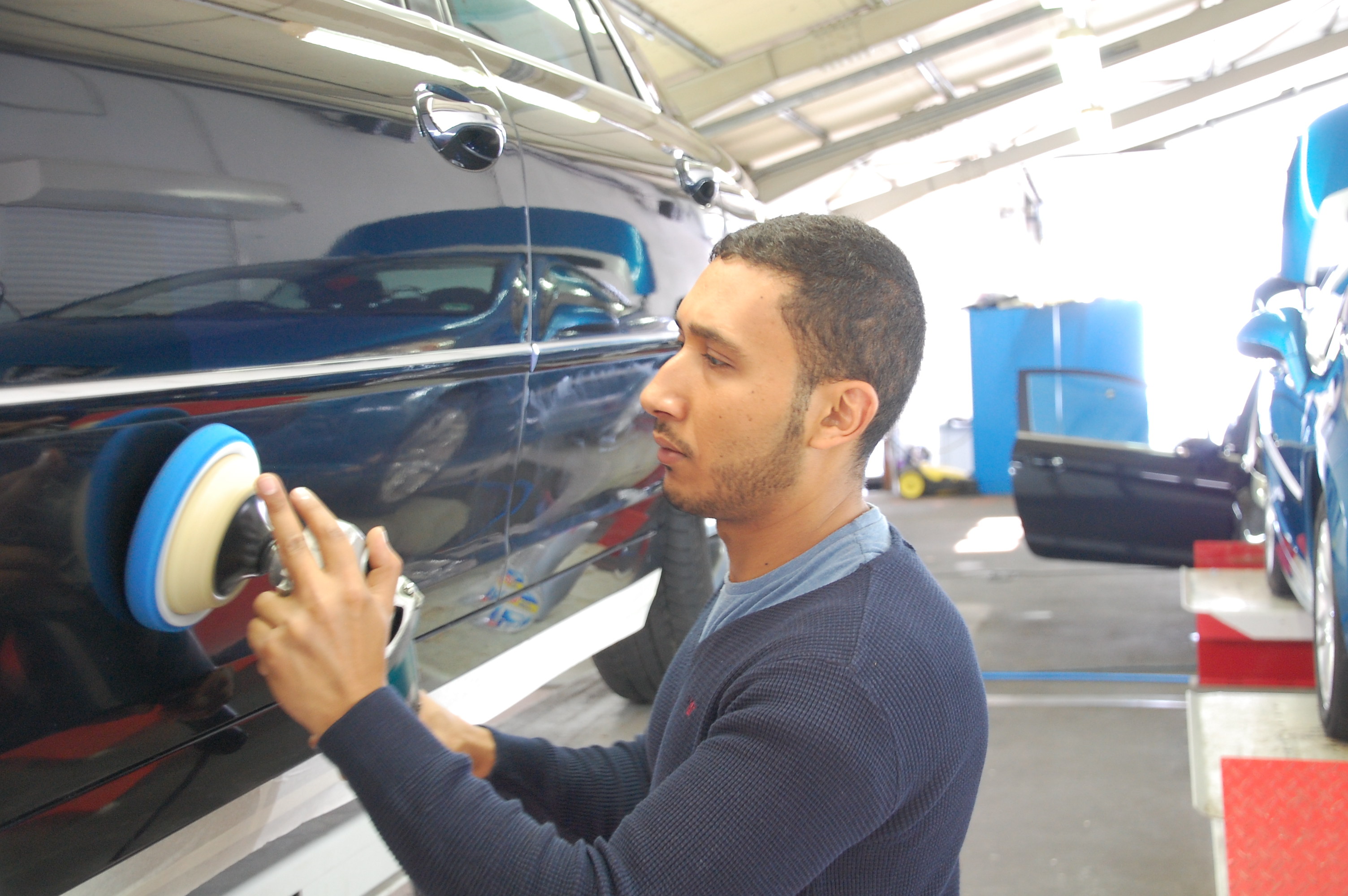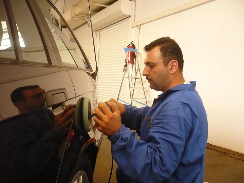 In der Lackaufarbeitungsschulung hat Herr Vasilikos gelernt, wie ein Fahrzeug professionell aufbereitet und poliert werden muss, wie die Kratzerentfernung funktioniert, wie man einen Autolack wie frisch lackiert aussehen lassen kann und wie ein Fahrzeug versiegelt wird.