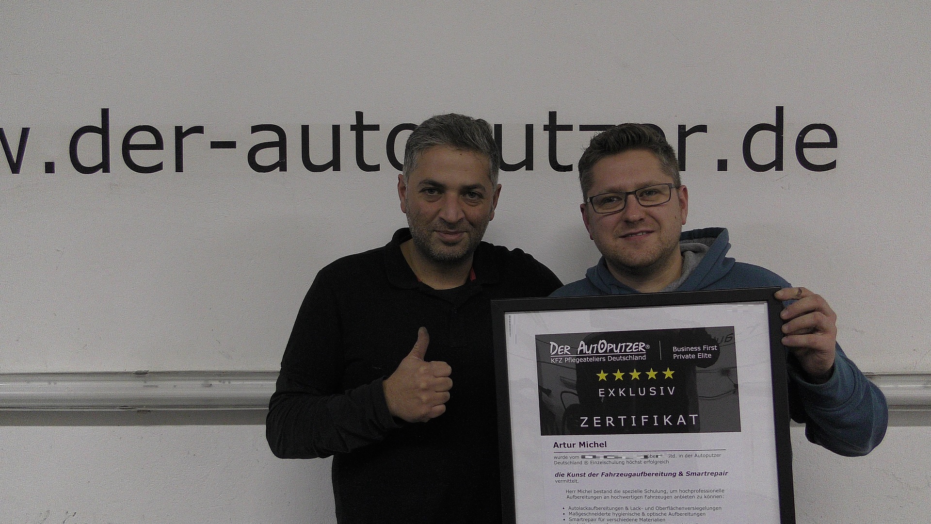 Unsere Autoputzer Absolventinnen und Absolventen sind inzwischen erfolgreiche Profis in der Autoaufbereitung und langjährige Anbieter professioneller Fahrzugaufbereitung & Smartrepair.. Darauf sind wir stolz.