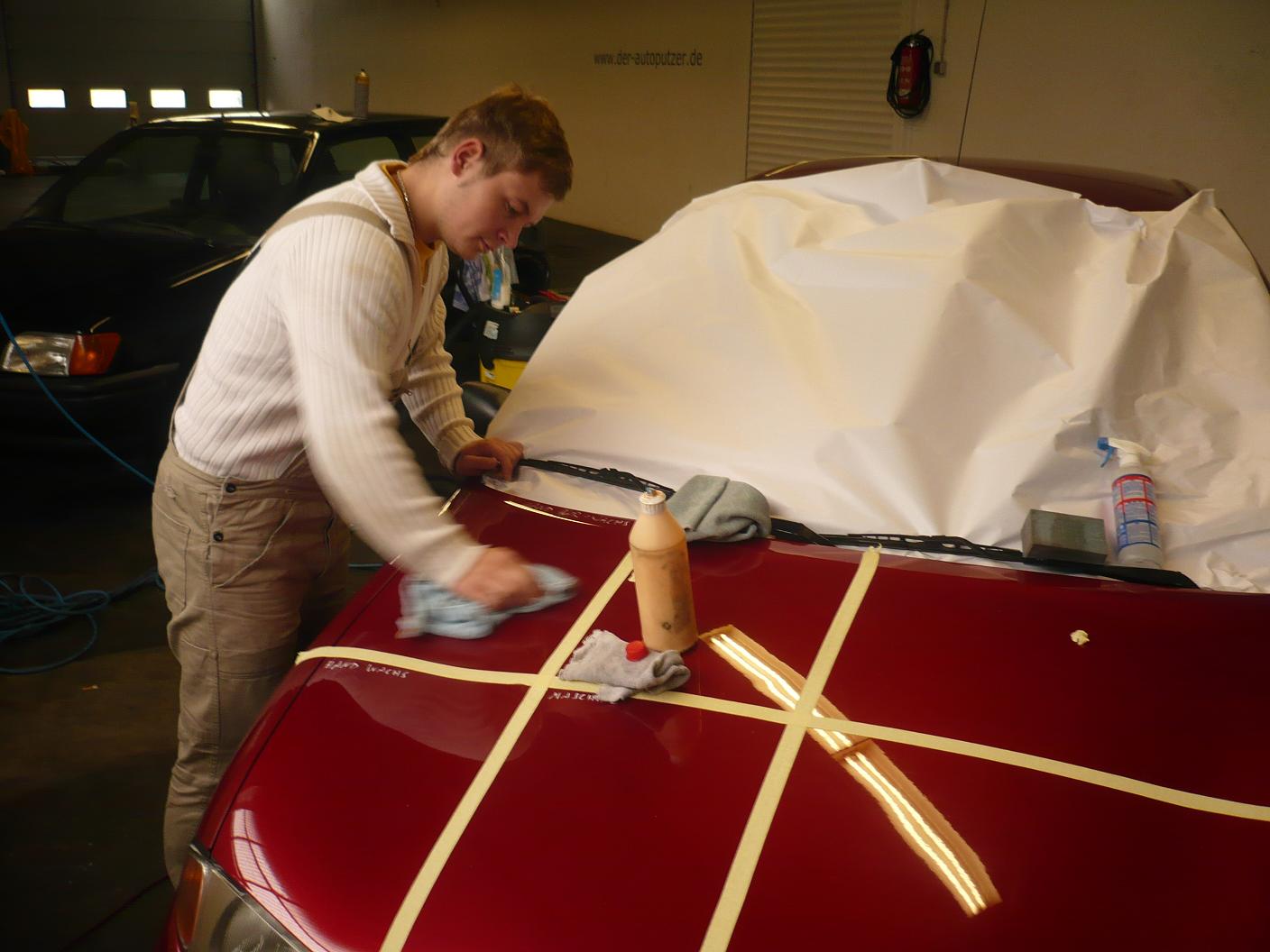 Nach einer Woche und ca. 50 Stunden Intensivschulung, ist Herr Abken nun bereit und in der Lage, die Künste der Fahrzeugaufbereitung an den Kundenfahrzeugen auszuüben.